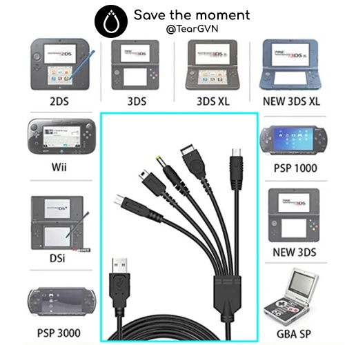Cáp sạc đa năng cho PSP / Nintendo New 3DS / Wii U / GBA SP
