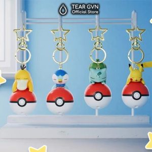 Móc khóa Pokemon và Pokeball phát sáng Langbowang gồm Pikachu, Psyduck, Bulbasaur, Piplup
