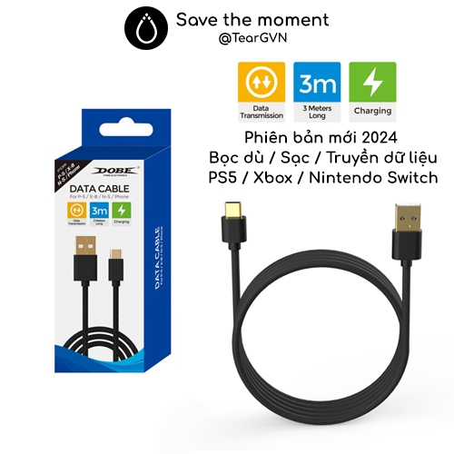 Cáp sạc và truyền dữ liệu Type-C DOBE dài 3M bọc dù cho tay cầm PS5 / Xbox Series SX / Switch Pro Controller
