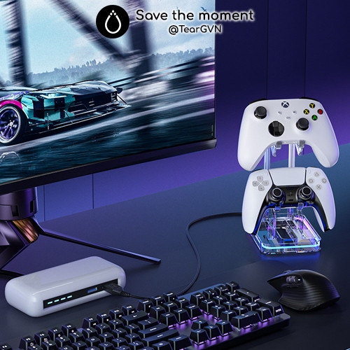 Giá đỡ tay cầm 2 tầng trong suốt AOLION có led RGB cho PS5 / PS4 / Xbox / Switch Pro Controller