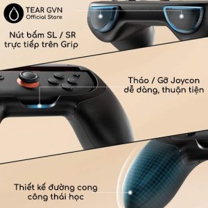 -Mặt lưng bộ Grip có kết cấu chống trượt giúp cầm chắc tay, đảm bảo an toàn ngay cả trong thời gian chơi kéo dài.
