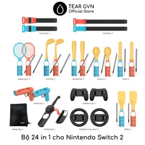 -Xin lưu ý: bộ 24 trong 1 (có ray nhựa hỗ trợ dùng cho Switch OLED / V1 / V2) ngoại trừ bộ dây đeo tay / chân, vô lăng, bộ Grip cầm tay, sung’ là không thể dùng được. Nên ưu tiên chọn bộ 18 in 1.