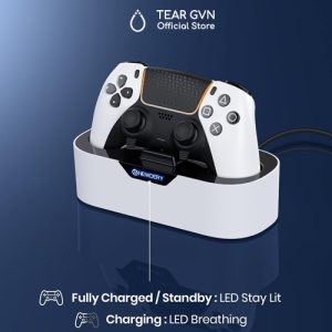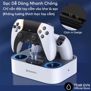 -Không cần căn chỉnh. Chỉ cần đặt tay cầm PS5 lên, sẽ tự khớp hoàn hảo với chân sạc, chỉ cần “thả và sạc”