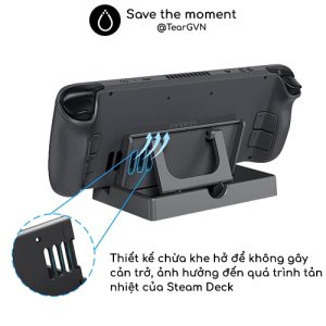 -Thiết kế chừa khe thoát nhiệt phía sau cho Steam Deck khi sử dụng.