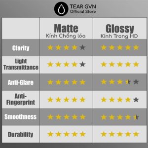 *Kính thường HD: độ trong suốt cao, nhìn màn rõ và chân thật. Tùy nhu cầu có thể đưa ra sự lựa chọn phù hợp