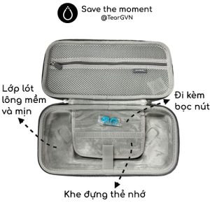 -Có khe đựng thẻ nhớ, túi lưới đựng phụ kiện, hộc chứa phụ đựng bộ sạc.