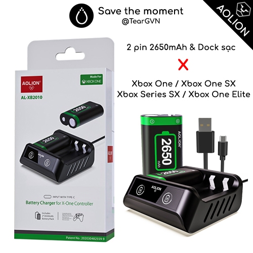 Bộ pin 2650mAh và Dock sạc AOLION cho tay cầm Xbox Series SX / Xbox One SX / Xbox One / Xbox One Elite